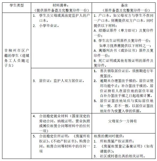 非柳州市户籍(随迁子女)学生报名所须提交的材料: