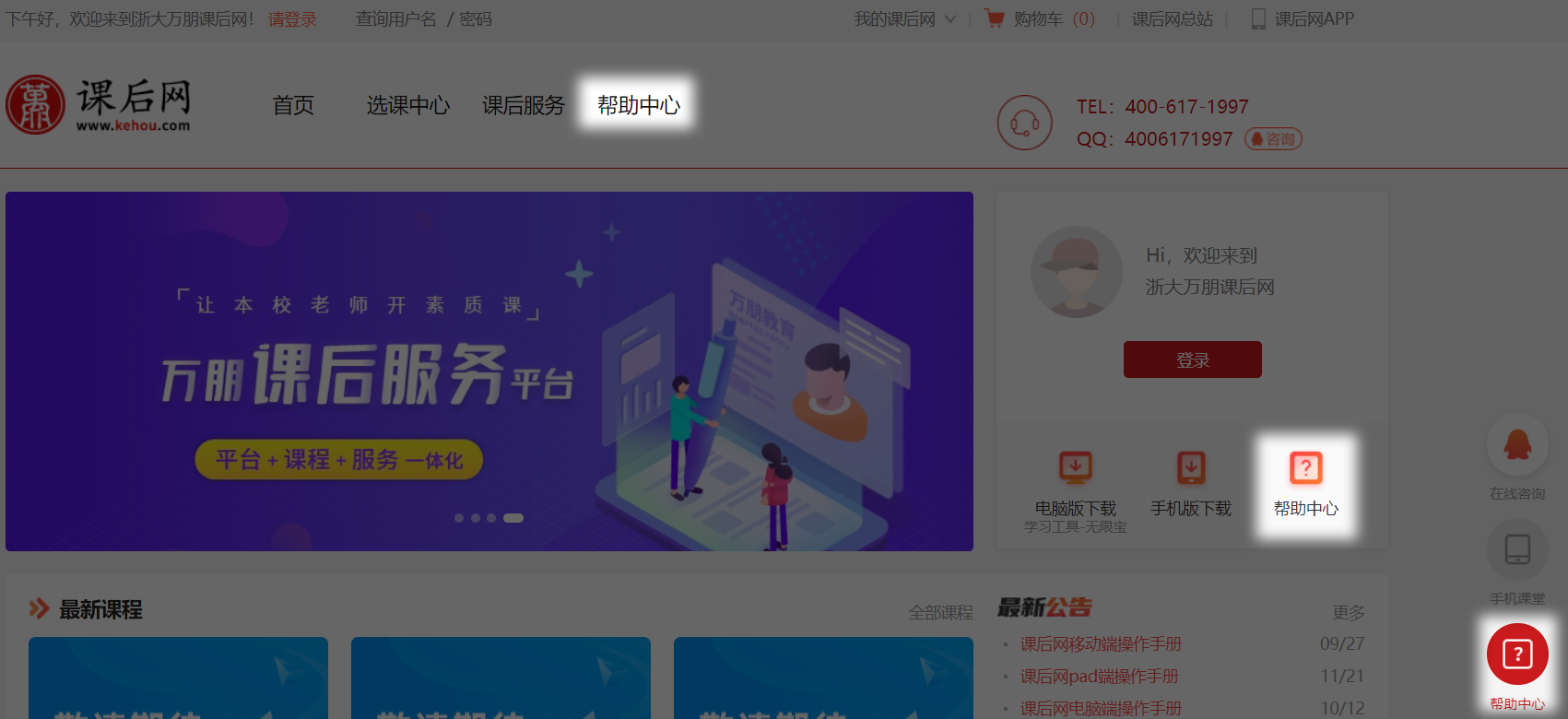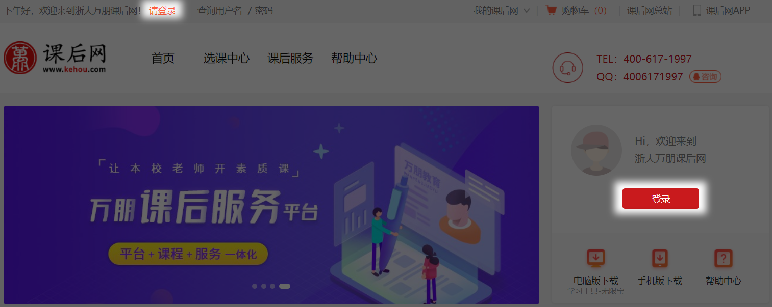 或者加入首页右上方显示的技术咨询QQ服务号400-617-1997,找老师进行解决或拨打全国免费咨询电话400-617-1997 。