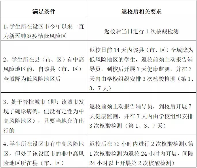 3.所在县(区、市)有中高风险地区的学生暂缓返校。