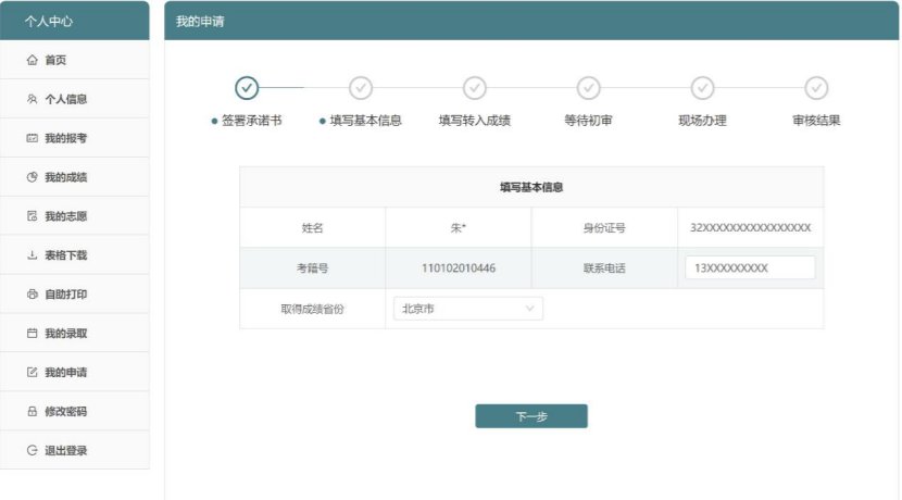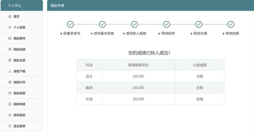 9、审核结果为“已申请未初审”时,可通过点击“撤回”中断申请流程,主要用于修改(添加、删除)科目及成绩、补充(更换)证明材料、或者放弃申请。