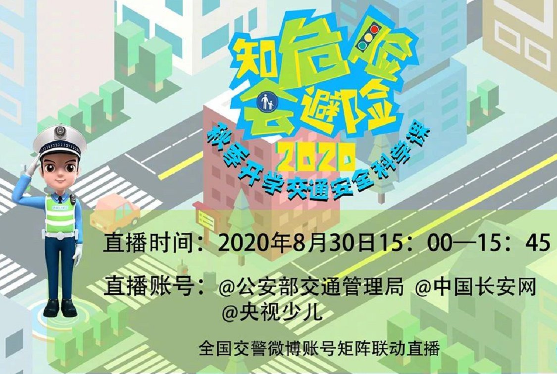 2020秋季开学交通安全科学课将在8月30日15:00在线直播 ,全国交警微博账号矩阵联动直播。
