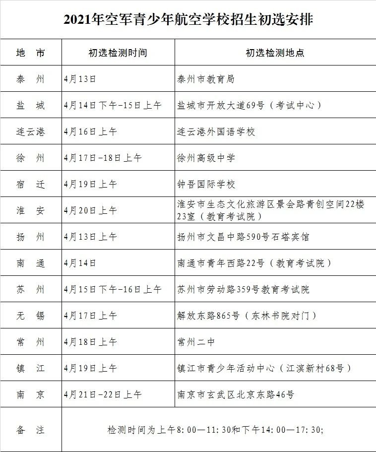 2021年江苏省空军青少年航空学校招生选拔程序: