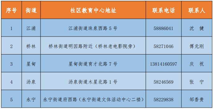 街道社区教育中心信息: