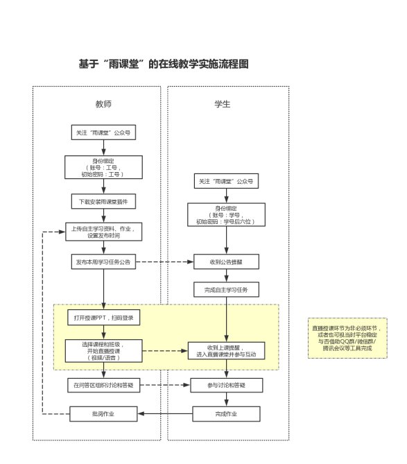 1、通过智慧教学平台“在线大学”或智慧教学工具“雨课堂”开展线上直播教学活动。