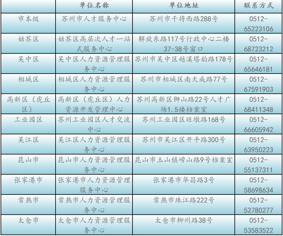 苏州各市县区人社部门档案服务机构联系方式