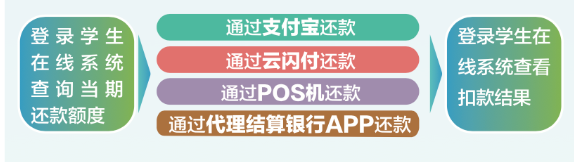 ●前往就近县区(或高校)学生资助管理部门,使用银联助学贷款专用POS机还款(请事先咨询是否提供助学贷款线下还款服务)。