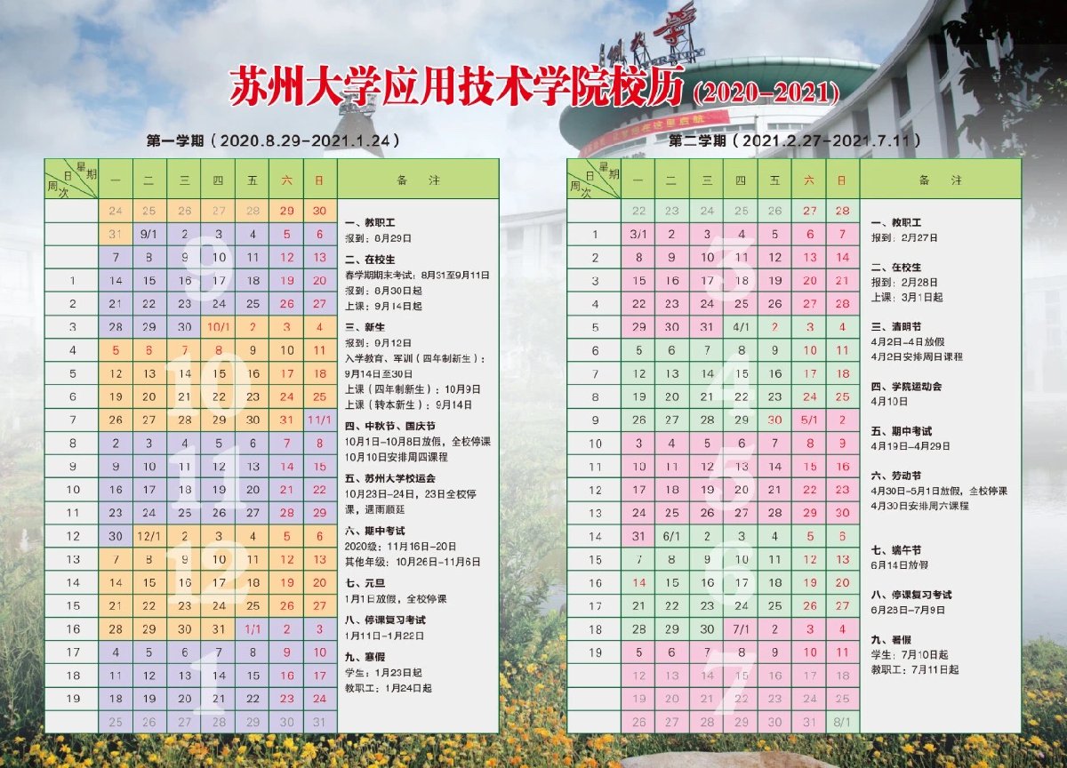 2021苏州大学应用技术学院校历安排