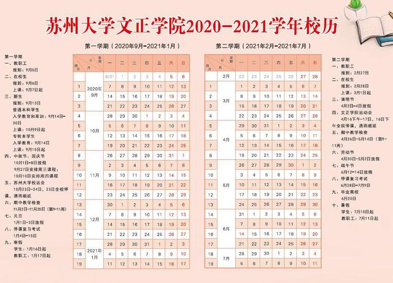 2021苏州大学文正学院校历安排