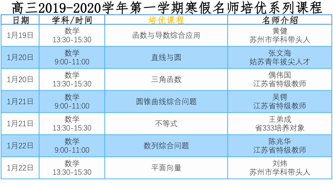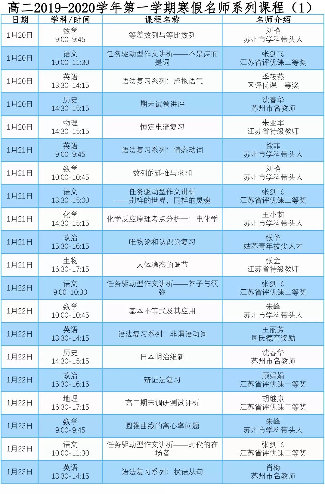 为满足学生在寒假及寒假延长期学习需要,保证广大学生在家学习的质量和效果,经研究决定在苏州线上教育中心原有寒假名师在线课程基础上,进一步扩大课程服务内容。