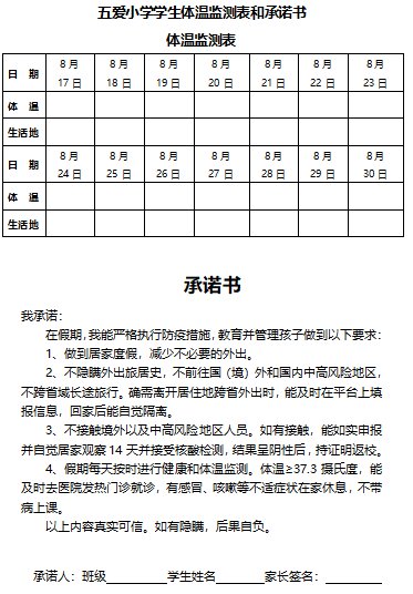 学生体温监测表和承诺书