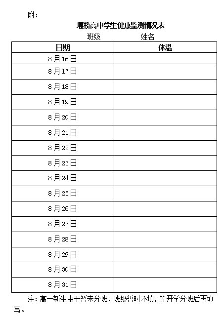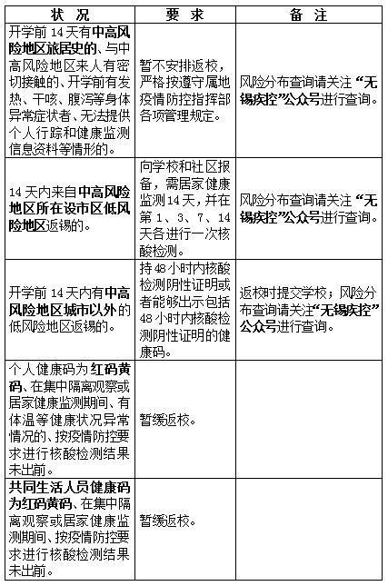2、在锡有固定住所的学生,原则上于8月15日前需在锡。从8月16日开始,每天做好健康监测,在开学时提交纸质健康监测情况表(表格另附)给班主任查验,学校存档。目前还在外地的学生抓紧返锡,有特殊原因的需及时报备。