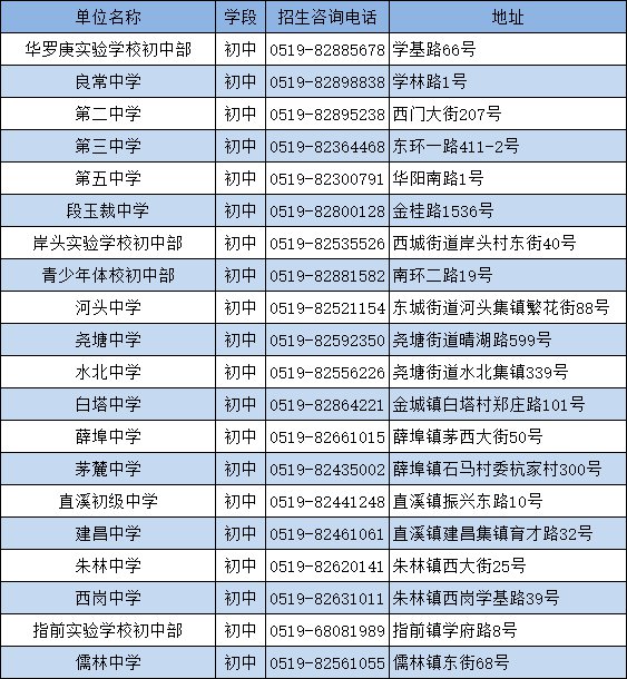 市区初中入学对象为具有常州市区户籍的小学毕(修)业生或在市区小学毕(修)业的流动就业创业人员随迁子女。