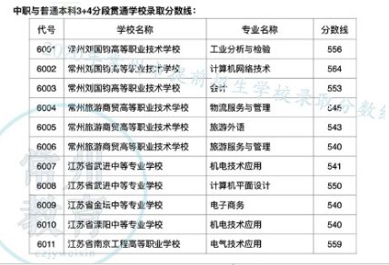 2019年常州中招3+4计划的招生学校专业和录取分数线: