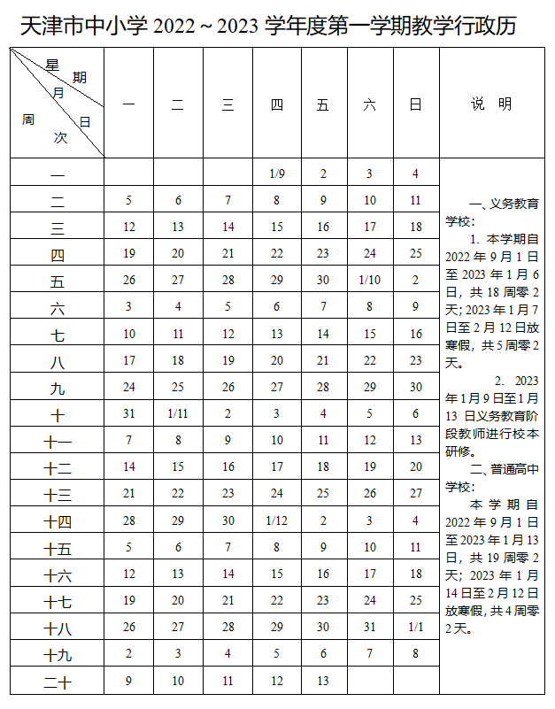 ➤➤拓展阅读:天津中小学2022~2023学年度教学行政历