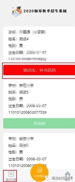 需要补充信息的,在学生信息,在线登记页面的左下角有登记记录,请点击,然后进入补充信息。