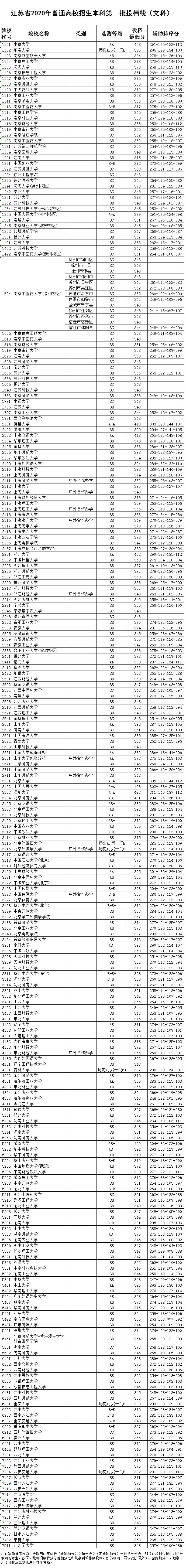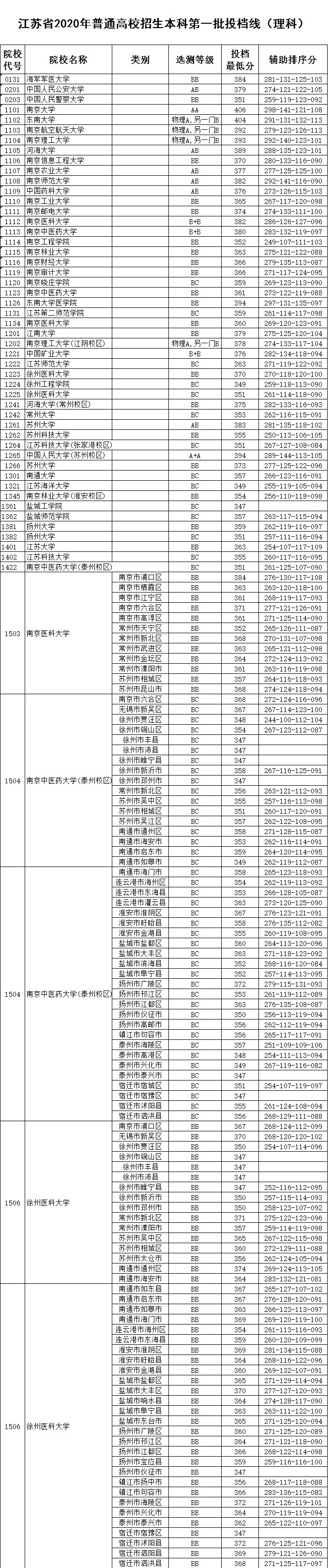 江苏省教育考试院公布了2020年高招本一批次院校投档线