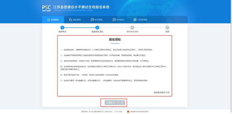 4.阅读“报名须知”,10 秒后可点击“下一步”操作按钮。