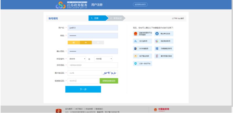 使用电脑登录江苏政务服务网 www.jszwfw.gov.cn,注册个人账号,填写所需信息并进行实名认证(注意:姓名、身份证号、手机号三项必须为本人实名)