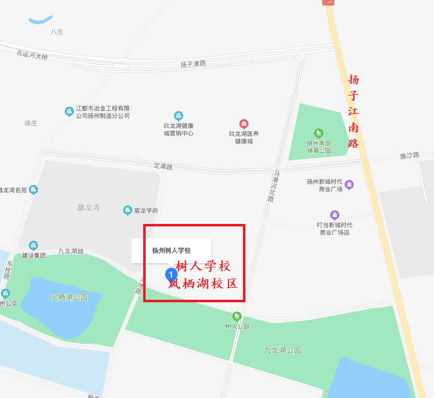 2.您可以沿邗江南路一直向南接扬子津路,或者沿扬子江路一直向南,如图行驶到学校南门。