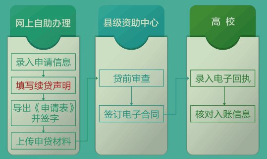 第二步:在贷款正式受理期间,前往户籍所在地县级资助中心办理续贷手续。