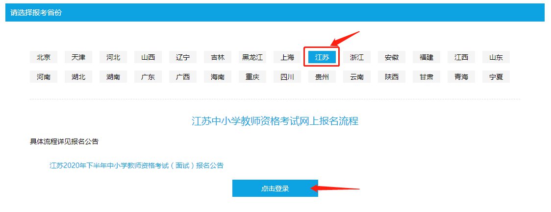 第二步:根据指引,选择报名省份,选择“江苏”,仔细阅读公告后,点击登录。输入个人信息后,即可进入报名页面。