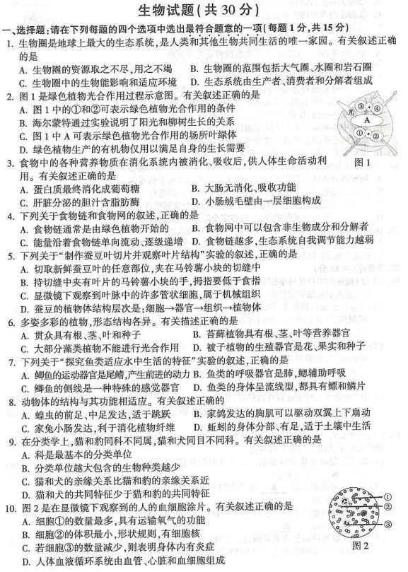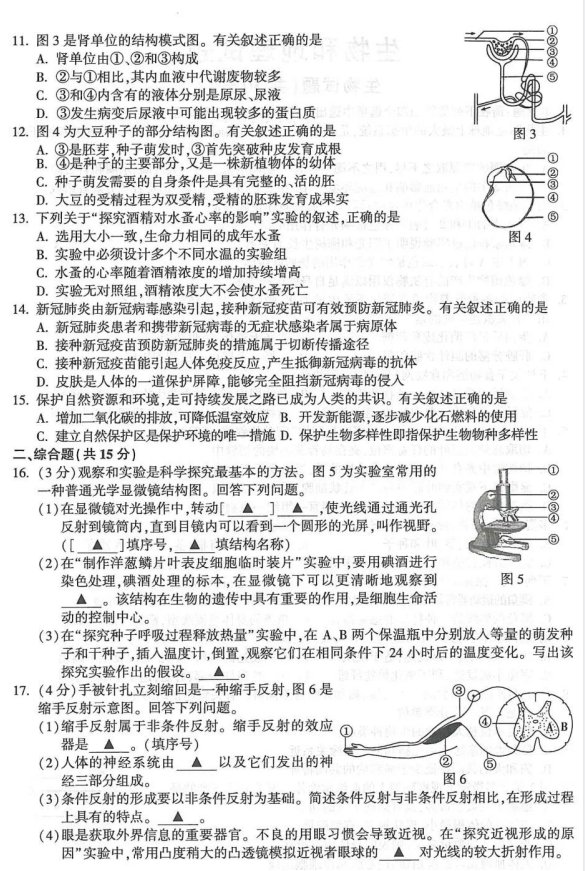 二、连云港2021年小中考生物答案