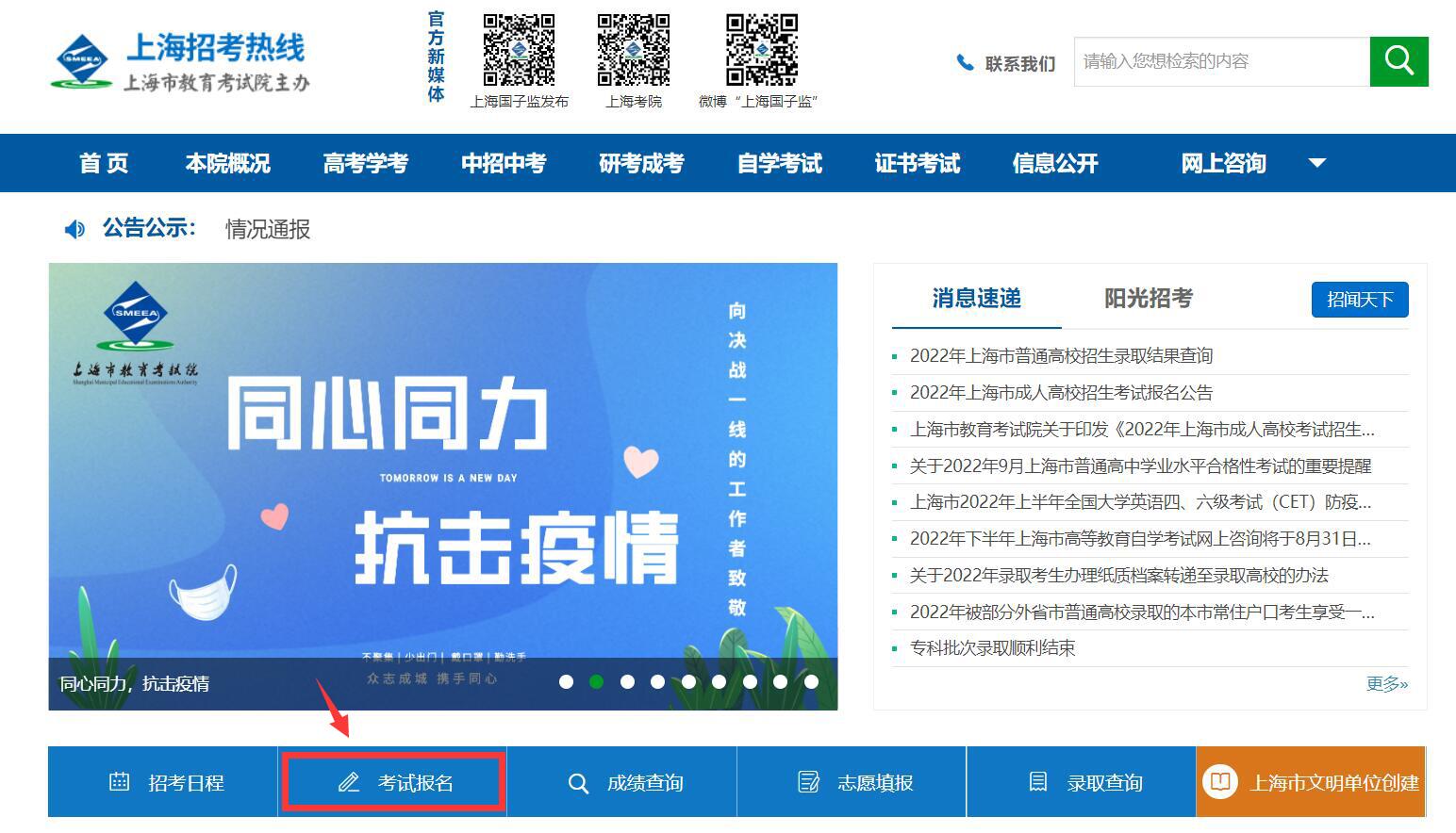 届时请考生登录“上海招考热线”网站(www.shmeea.edu.cn),点击首页“考试报名”栏目进入缴费入口。