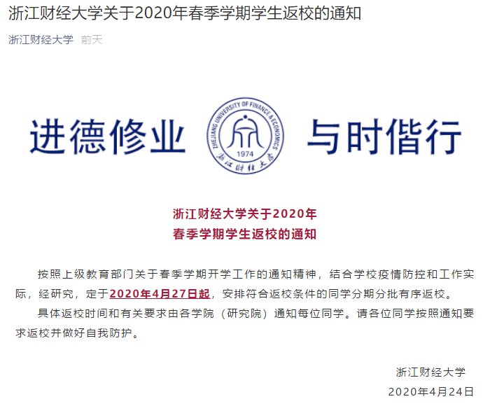 按照上级教育部门关于春季学期开学工作的通知精神,结合学校疫情防控和工作实际,经研究,定于2020年4月27日起,安排符合返校条件的同学分期分批有序返校。