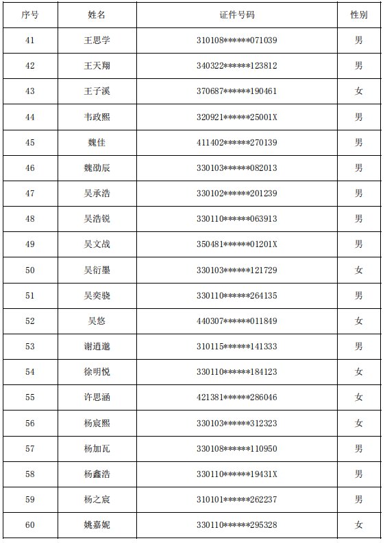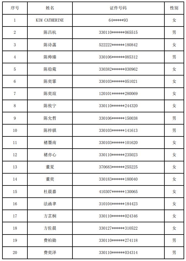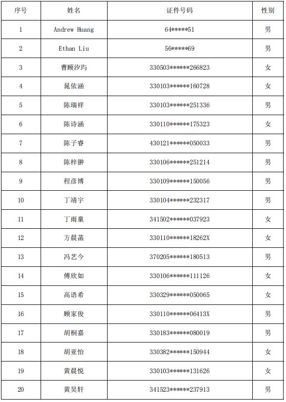 杭州市育海外国语学校(小学部)2020年派位录取名单