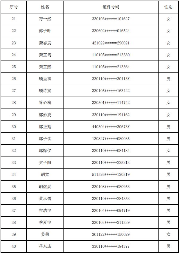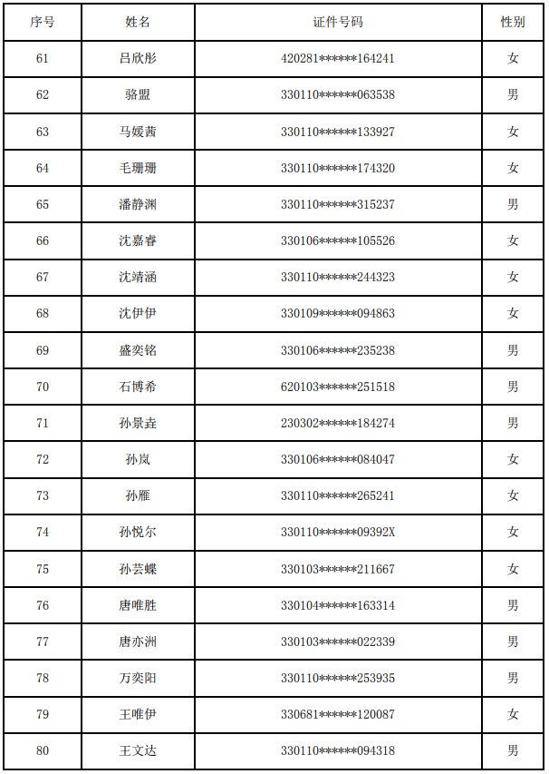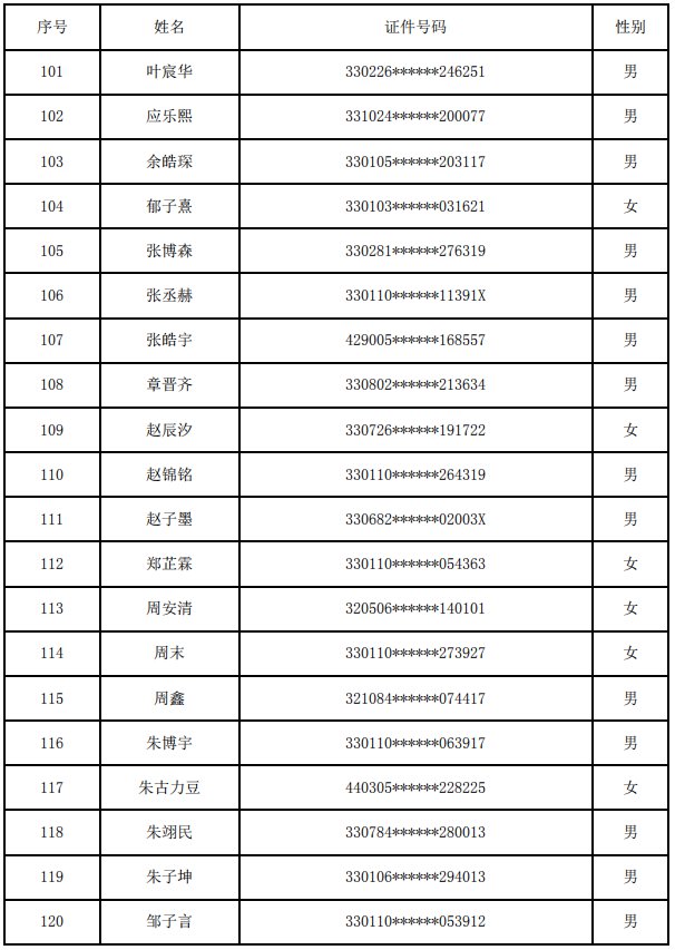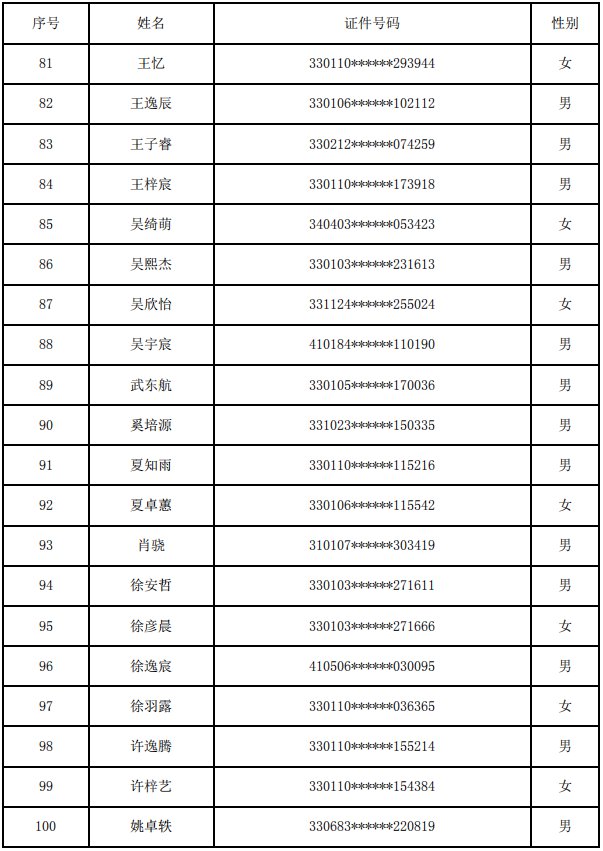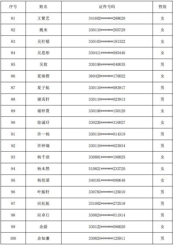 杭州市余杭区绿城育华翡翠城学校(小学部)2020年派位录取名单