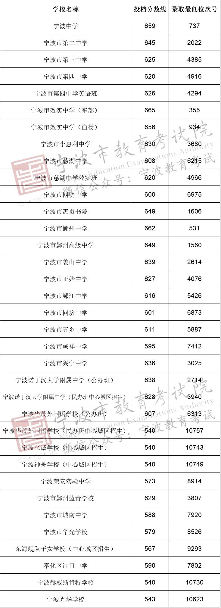 2021年宁波市直属普通高中投档分数线汇总(最新)