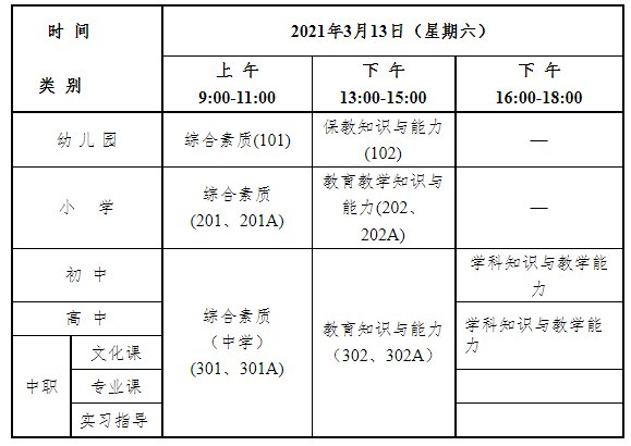 本次笔试考试日期为2021年3月13日,各科目考试时间均为120分钟、采用纸笔考试方式。