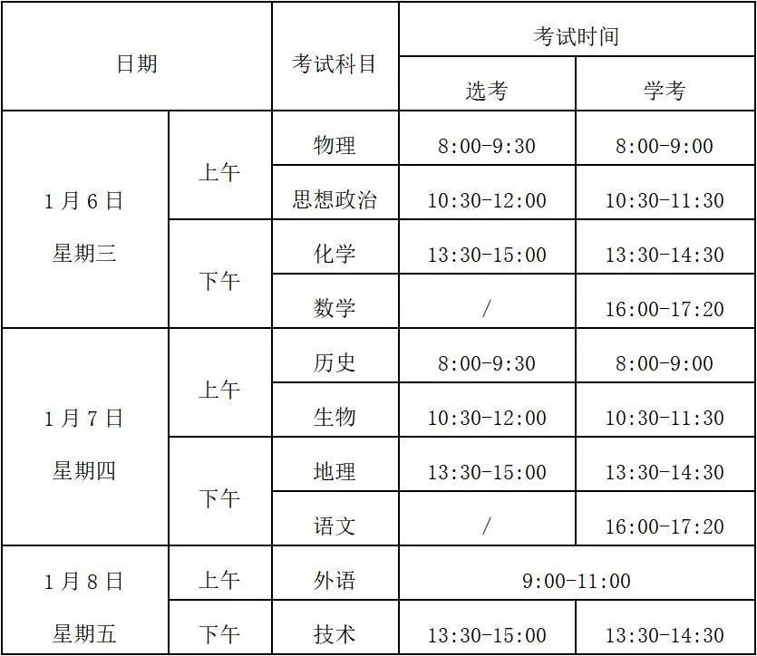 学考考试科目:语文、数学、外语(含英语、日语、俄语、德语、法语、西班牙语)、思想政治、历史、地理、物理、化学、生物、技术(含信息技术、通用技术)。