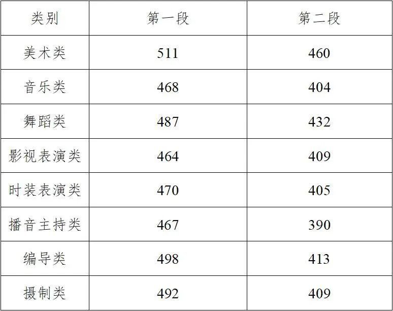 艺术类第二批专业省统考各类别综合分分段线