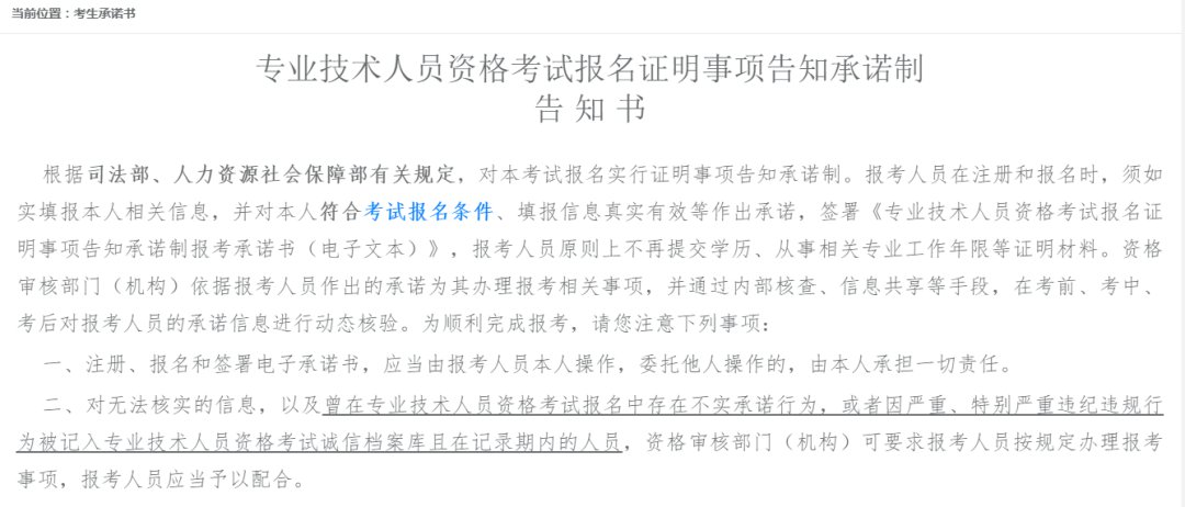 3.认真阅读报考须知和专业技术人员资格考试报名证明事项告知承诺制告知书,看完后点击【已阅读并知晓】。