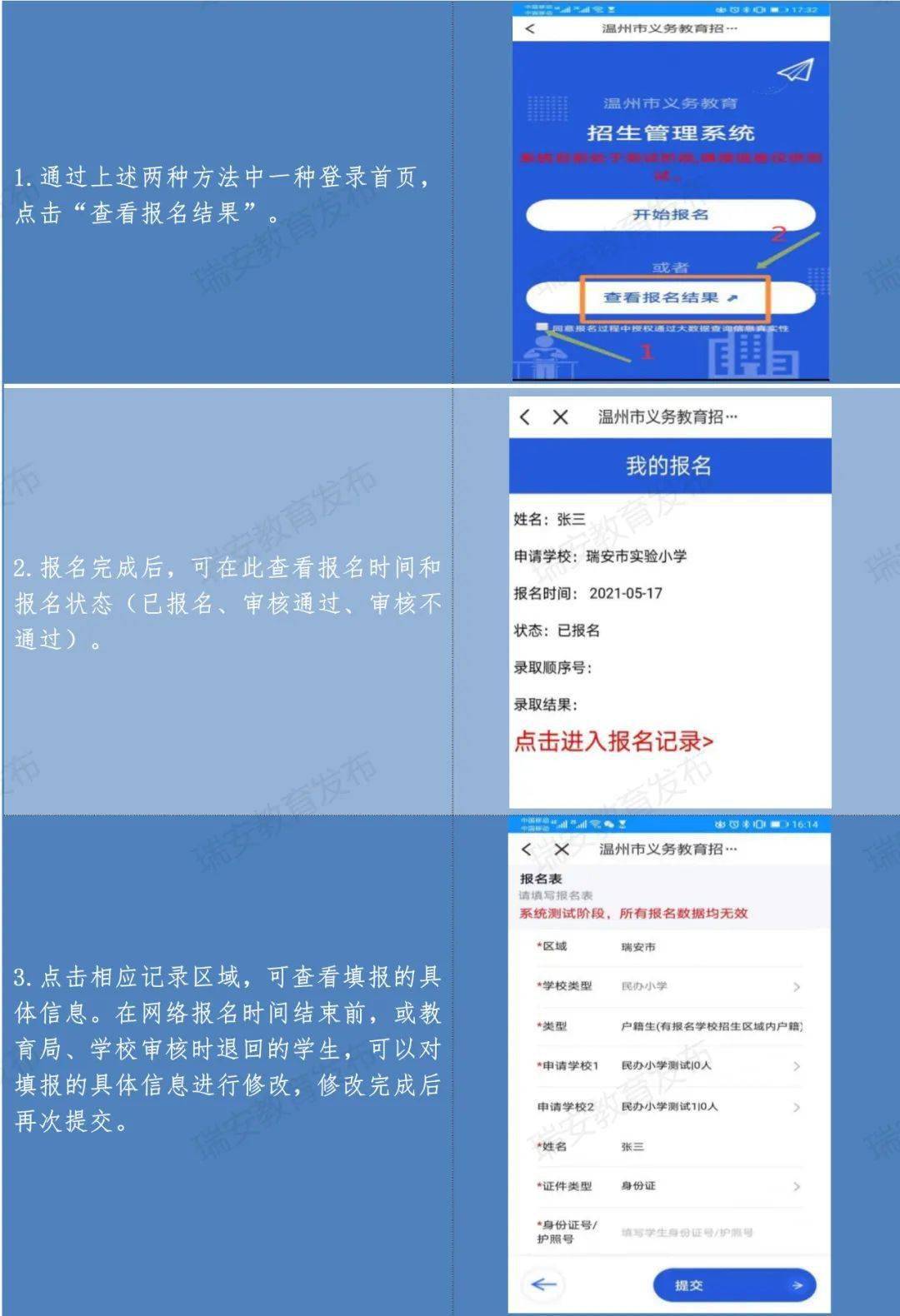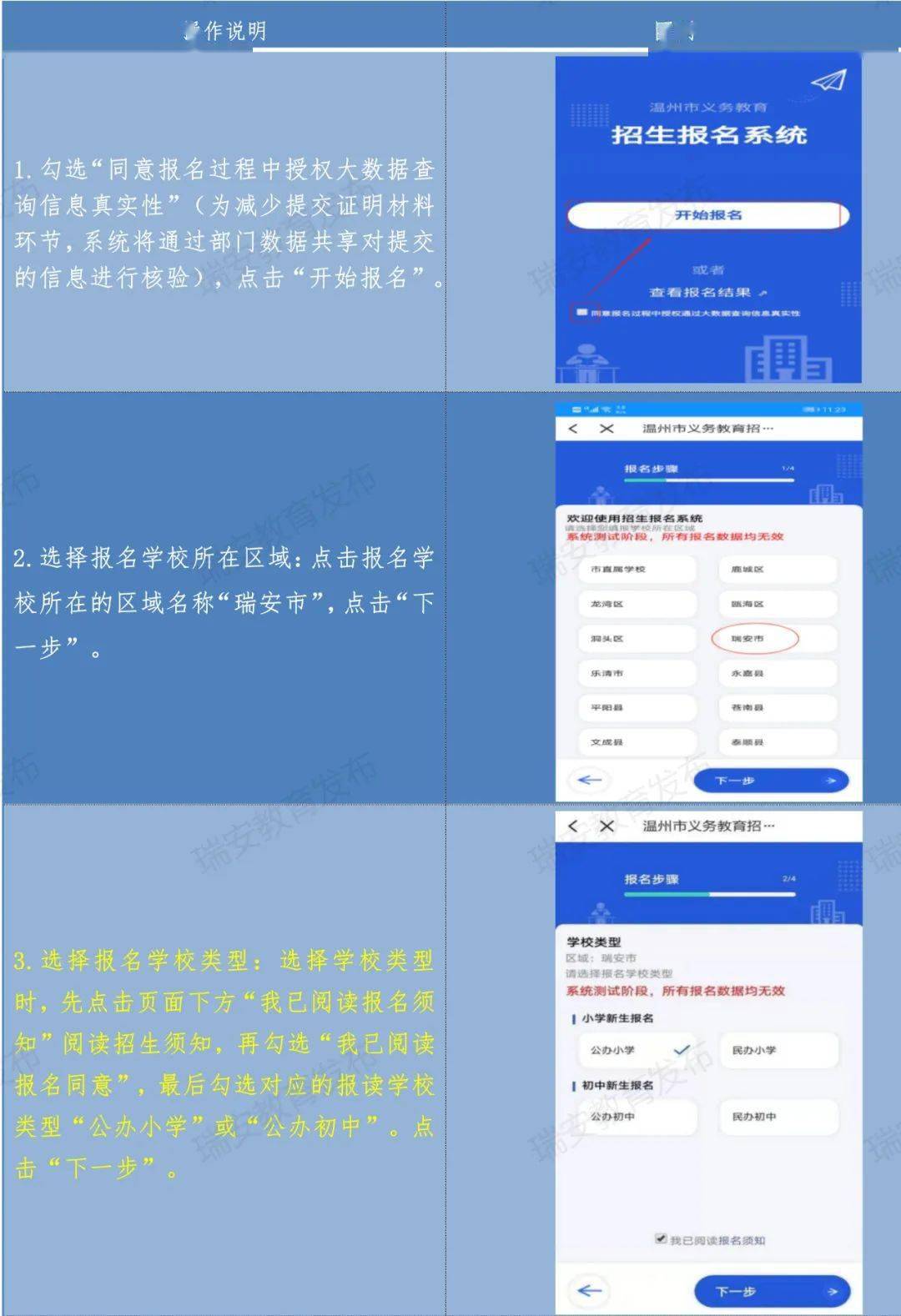 1.义务教育招生工作涉及面广、政策性强,相关内容未经允许,不得转载,非官方渠道未经确认发布的招生政策信息,与瑞安市教育局无关。各教育学区和义务教育阶段学校在充分调研了解的基础上,分别制定招生实施办法(细则),并上报市教育局、教育学区备案,核准后通过学校门户网站“阳光招生”专栏向社会公布。要指定专人做好招生政策解释和来访接待工作。