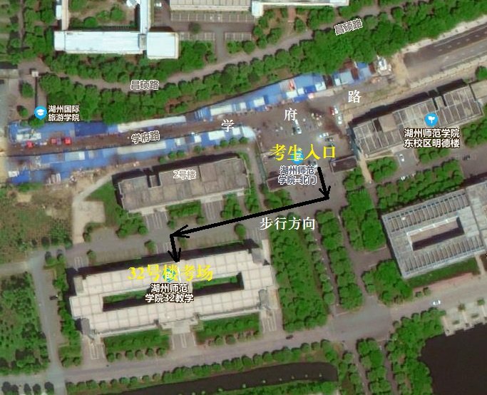 6、本次考试我市考点设在湖州师范学院(东校区)、浙江信息工程学校和湖州艺术与设计学校。根据疫情防控相关要求,考生车辆一律禁止进入考点学校,考生必须按指定的考生入口进入考点学校。
