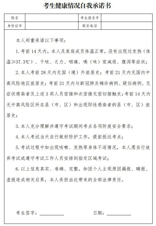 考生健康情况自我承诺书