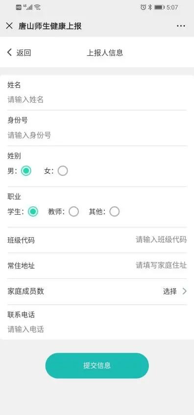点击确定进入【上报人信息】页面,按照要求正确填写个人相关信息,填写完信息等待班主任审核通过;