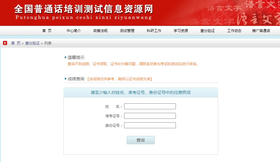1、扫描上方报考普通话证网站二维码,点击“成绩/证书查询”一栏。