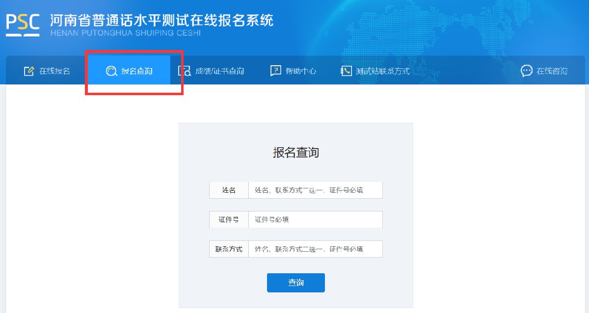 河南省普通话水平测试在线报名系统暂未开通在线打印准考证功能,无法在线查询准考证。