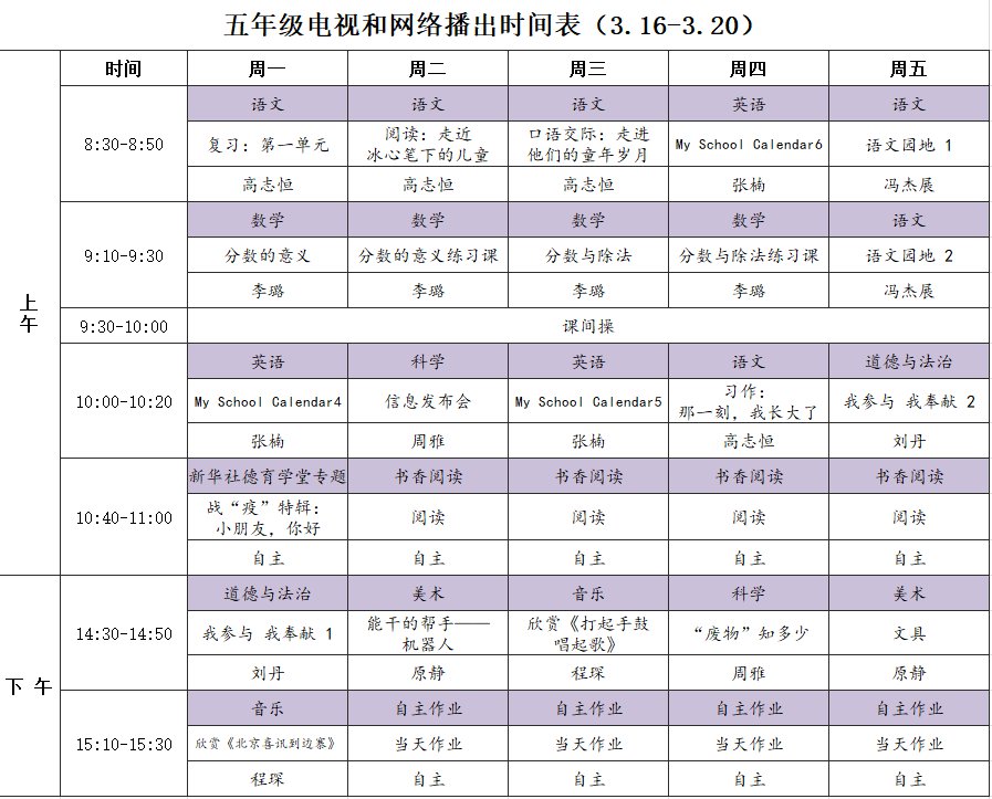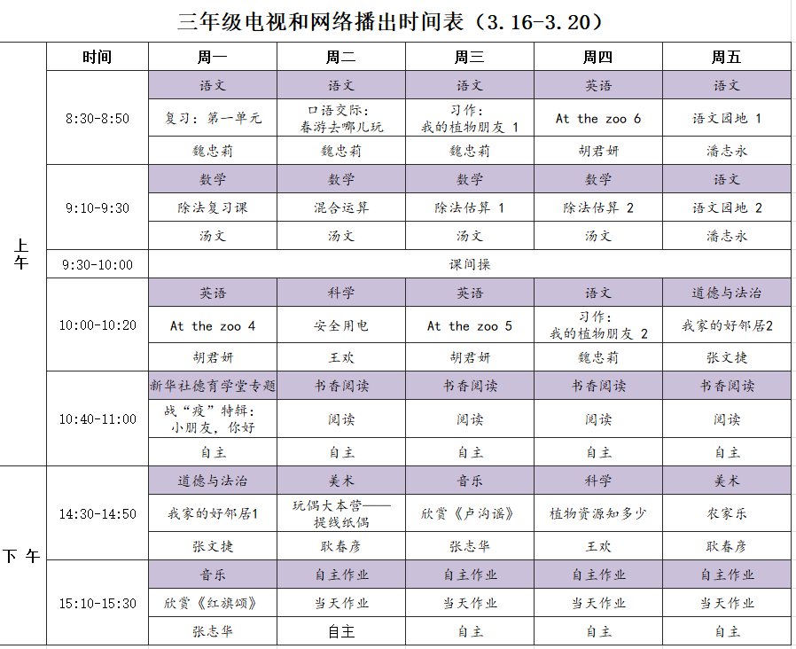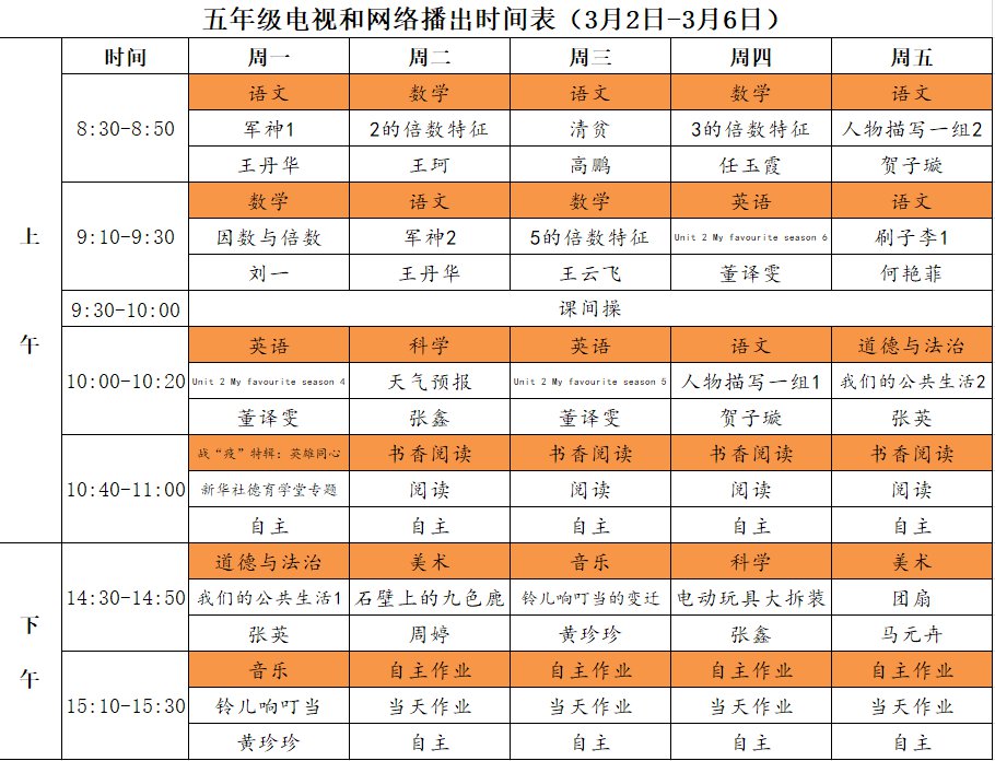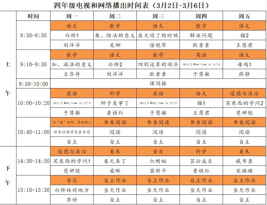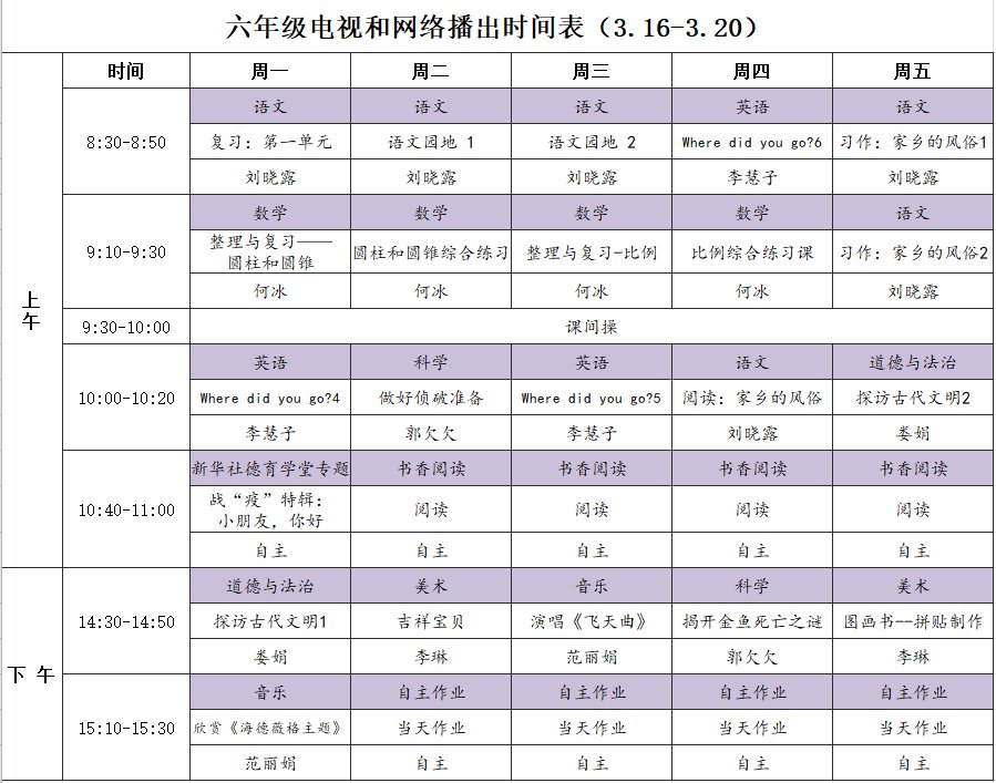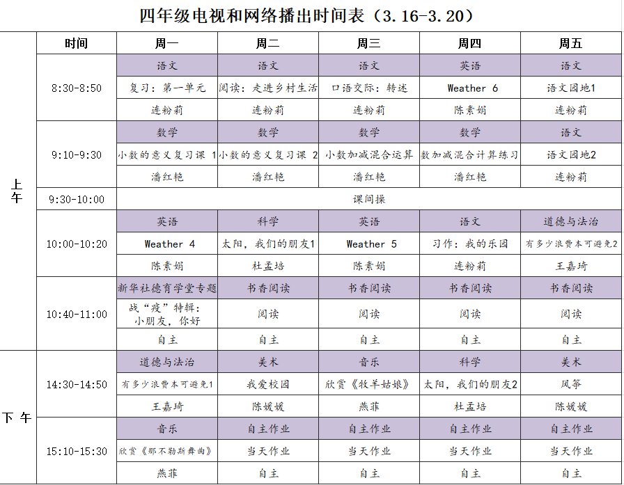 小学详细播出时间表