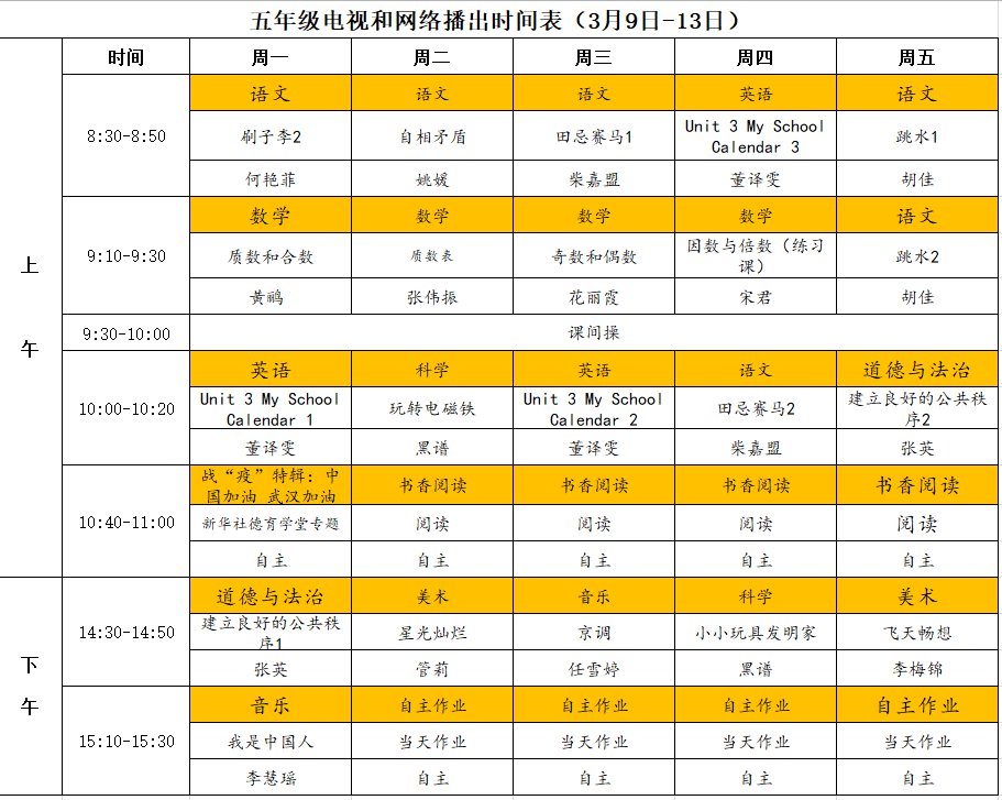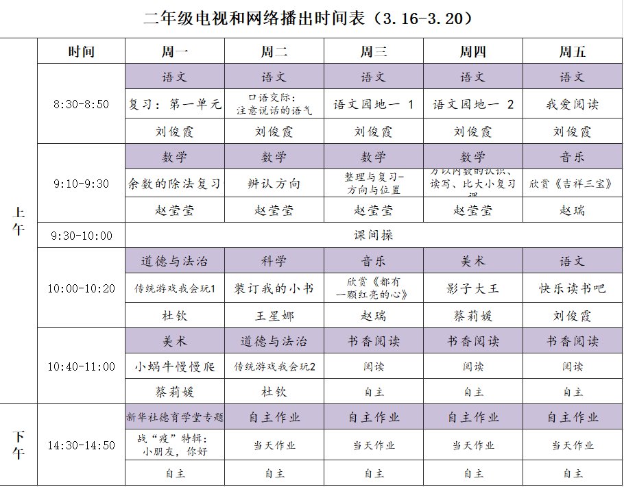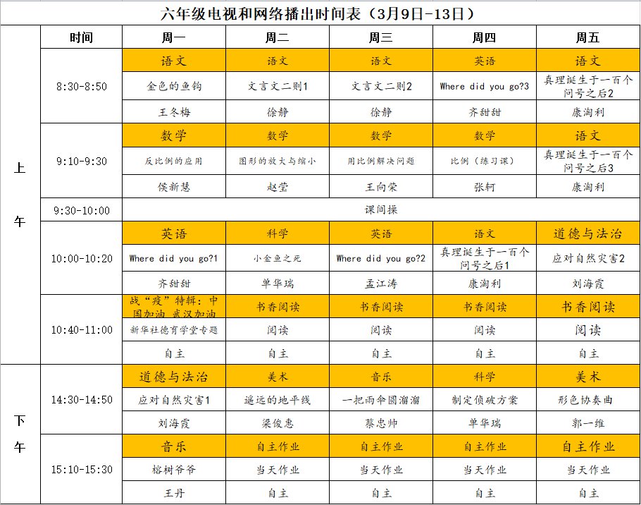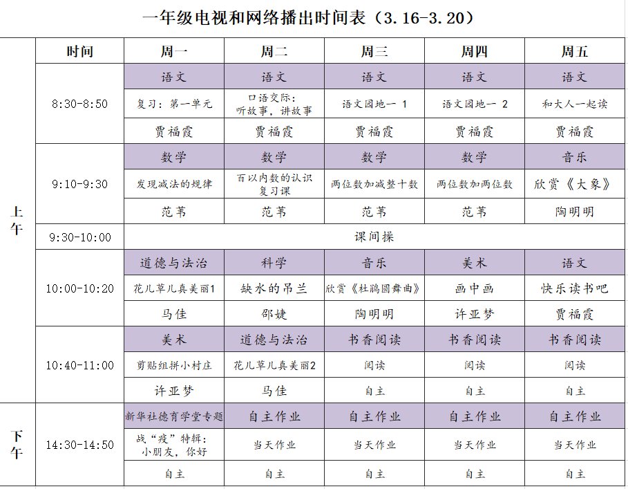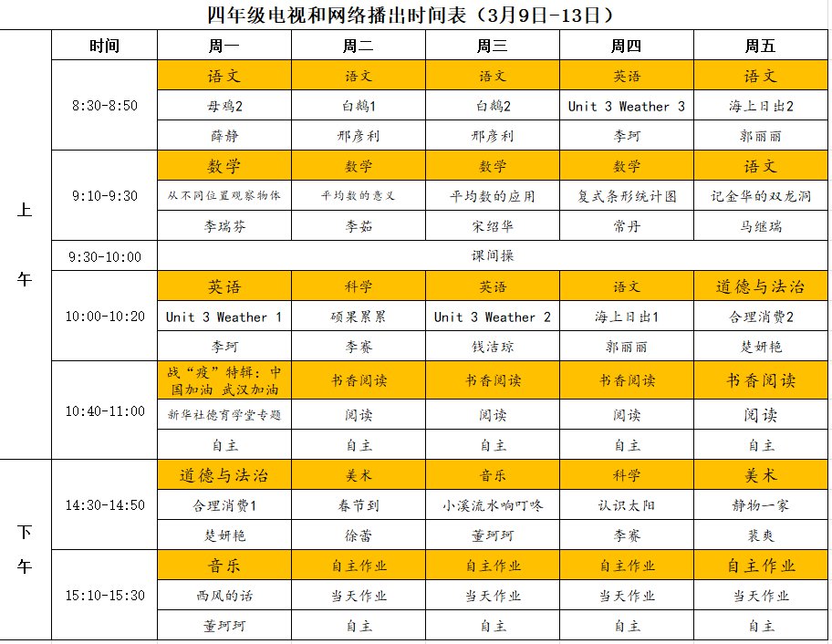 小学详细播出时间表