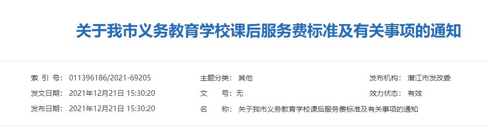 潜江市课后服务政策及收费标准
