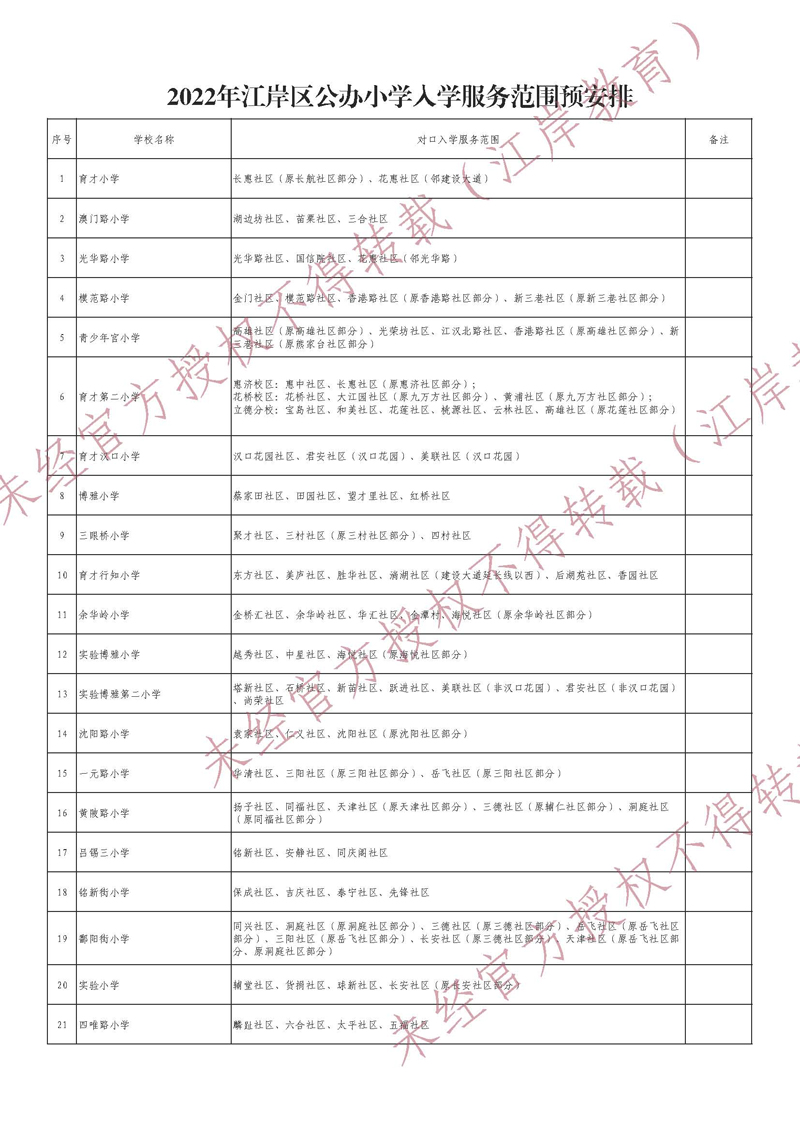 | 2022武汉江岸区公办小学入学服务范围预安排 | |||