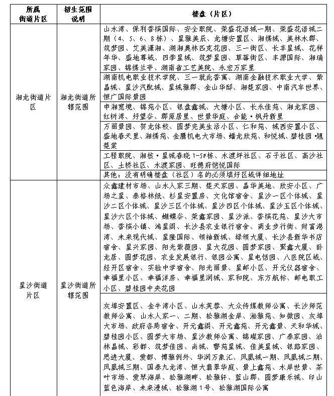 (三)星沙、湘龙、泉塘、长龙、㮾梨五个街道辖区范围内小一新生网上报名片区划分