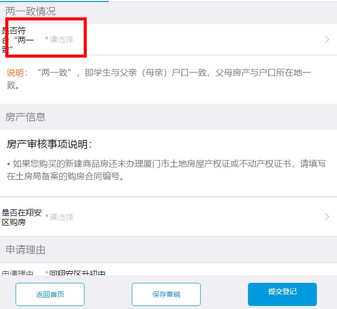5.房产情况填写:是否在翔安区购房需家长根据自己的实际购房情况点选。