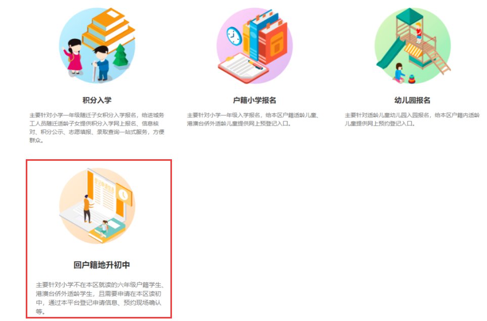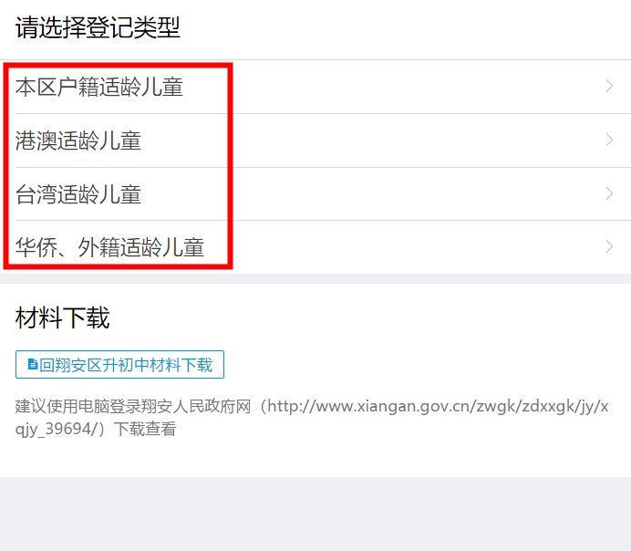 登录i厦门,在[i服务]-[基础教育报名]板块点击进入,然后点击“回户籍地升初中”再选择“翔安区”。注意选择正确的区填报。