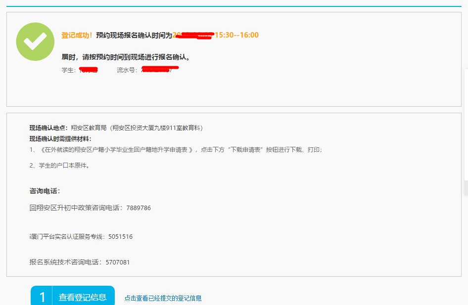 2021年翔安区小升初《回翔安区升初中网上预约登记》
