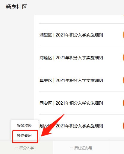 1、关注【畅享社区】微信公众号,点击菜单栏“积分入学”-“操作咨询”!